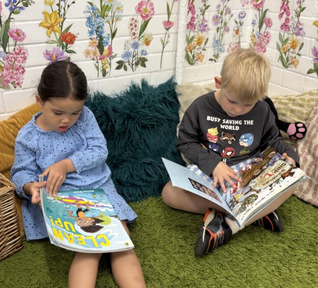 We teach reading using RWI. We foster a love of reading and storytelling by immersing our learning in high quality texts. We believe that reading is at the core of children’s learning and is a key indicator of children’s academic and social progress. We believe that by high quality teaching, using a structured systematic phonics scheme (such as RWI), every child can learn to read.